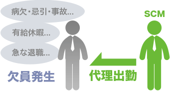 欠勤や急な退職者が発生した際の代勤(代理出勤)。